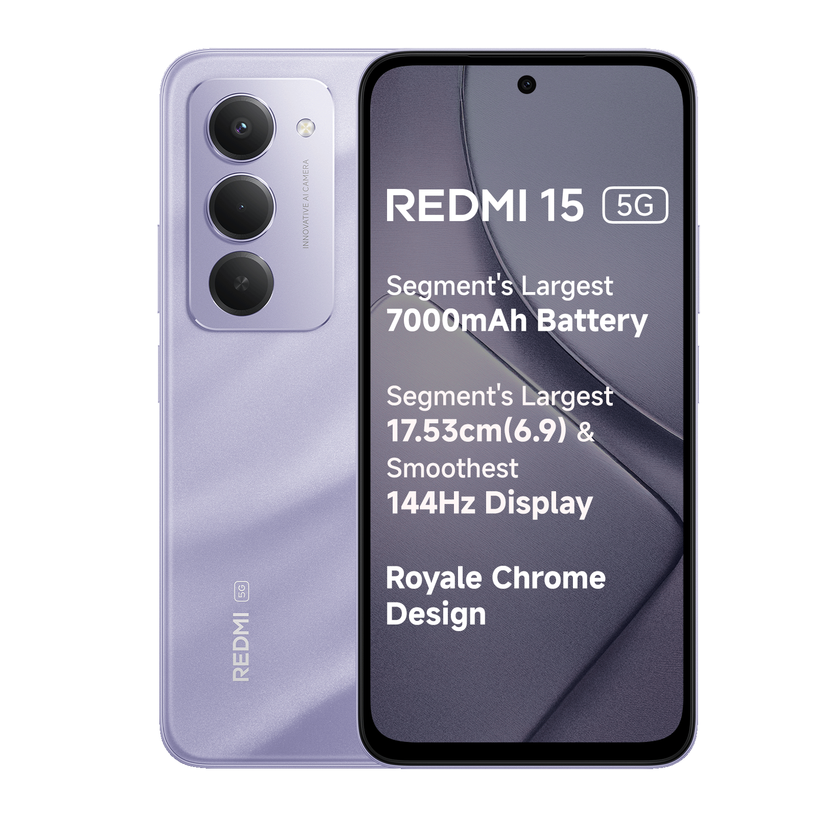 Redmi 15 with 8 GB RAM and 256 GB internal storage features a large 6.9″ FHD+ display with 144 Hz refresh rate, powerful Snapdragon 685 processor, massive 7000 mAh battery with 33 W fast charging and 18 W reverse charging, dual 50 MP camera, side‑mounted fingerprint sensor, and HyperOS 2 based on Android 15 — excellent value for everyday use.